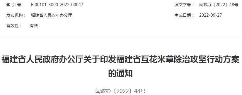 《福建省互花米草除治攻堅行動方案》已經(jīng)省政府同意,現(xiàn)印發(fā)給你們,請結合實際,抓好組織實施。
