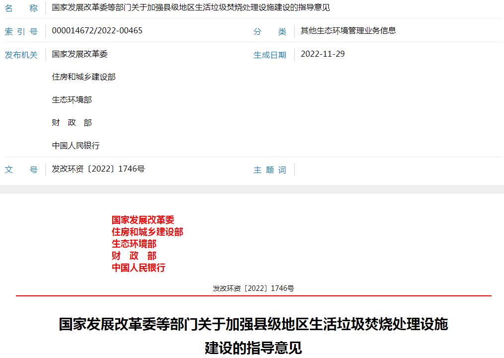 推進城鎮生活垃圾焚燒處理設施建設是強化環境基礎設施建設的重要環節和基礎性工作。為全面貫徹落實黨的二十大精神,貫徹落實黨中央、國務院有關決策部署,加強縣級地區(含縣級市)生活垃圾焚燒處理設施建設,加快補齊短板弱項,經國務院同意,現提出以下意見。