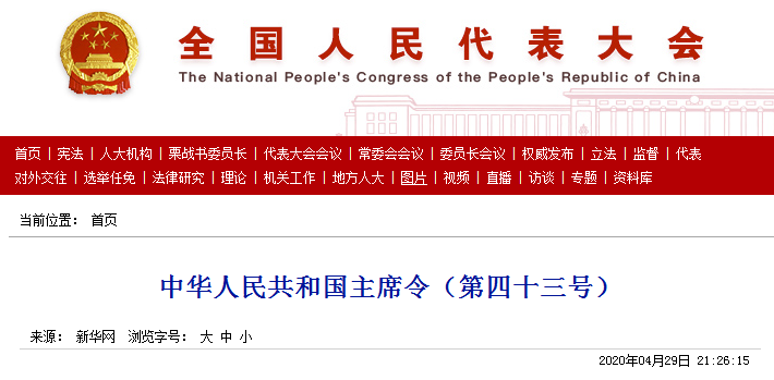 《中華人民共和國固體廢物污染環境防治法》已由中華人民共和國第十三屆全國人民代表大會常務委員會第十七次會議于2020年4月29日修訂通過,現予公布,自2020年9月1日起施行。