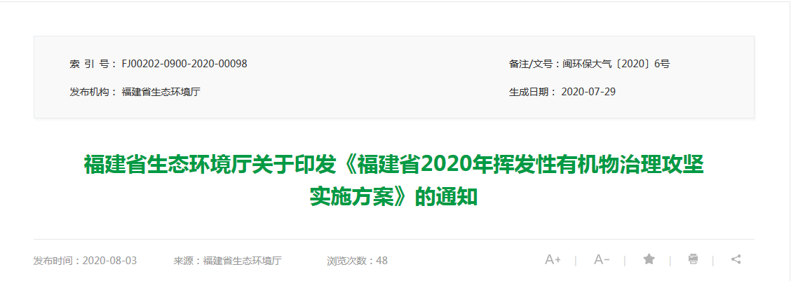 附件:《福建省2020年揮發(fā)性有機物治理攻堅實施方案》