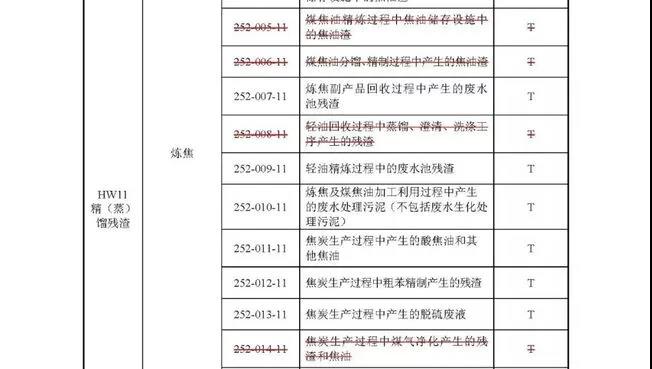 4.修改煤焦化相關(guān)危險(xiǎn)廢物的規(guī)定。針對(duì)該類(lèi)廢物重點(diǎn)從兩個(gè)方面進(jìn)行修改:一是重新梳理并明確了煤焦化過(guò)程產(chǎn)生的各類(lèi)危險(xiǎn)廢物及其工藝來(lái)源;二是根據(jù)不同煤焦油的利用途徑,在《危險(xiǎn)廢物豁免管理清單》中增加當(dāng)煤焦油用于生產(chǎn)煤基氫化油、碳素材料、炭黑時(shí),滿(mǎn)足一定條件利用過(guò)程可不按危險(xiǎn)廢物管理的規(guī)定。