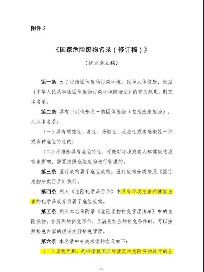 《國(guó)家危險(xiǎn)廢物名錄(修訂稿)》(二次征求意見(jiàn)稿)