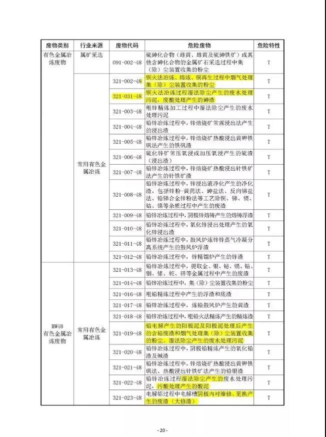 5.修改銅、鉛、鋅冶煉相關(guān)危險(xiǎn)廢物的規(guī)定。2016 年版《名錄》對(duì)銅、鉛、鋅等有色金屬冶煉過(guò)程產(chǎn)生的危險(xiǎn)廢物類(lèi)型及工藝描述不清,本次修訂過(guò)程中對(duì)該類(lèi)廢物開(kāi)展了專(zhuān)項(xiàng)調(diào)查研究,重新梳理并細(xì)化了銅、鉛、鋅冶煉過(guò)程產(chǎn)生的危險(xiǎn)廢物種類(lèi)及其工藝來(lái)源和危險(xiǎn)特性。