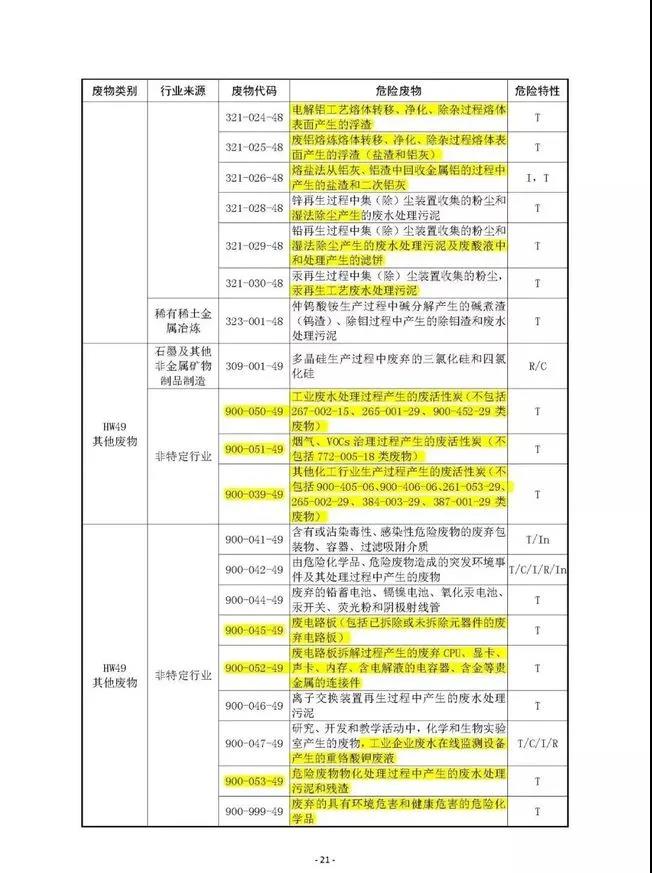 6.修改鋁冶煉相關(guān)危險(xiǎn)廢物的規(guī)定。2016 年版《名錄》對(duì)鋁冶煉過(guò)程產(chǎn)生的危險(xiǎn)廢物類(lèi)型及產(chǎn)生工藝描述不清,本次修訂過(guò)程中對(duì)鋁冶煉過(guò)程中產(chǎn)生的危險(xiǎn)廢物進(jìn)行了重新梳理,調(diào)查分析了其危險(xiǎn)特性,明確了鋁冶煉過(guò)程產(chǎn)生的危險(xiǎn)廢物種類(lèi)及其工藝來(lái)源和危險(xiǎn)特性。